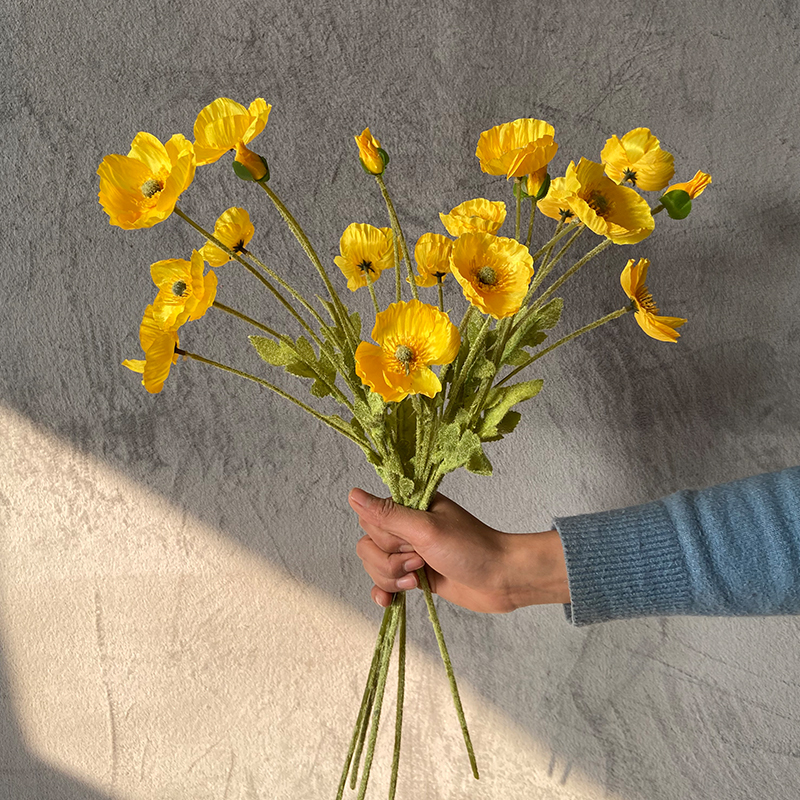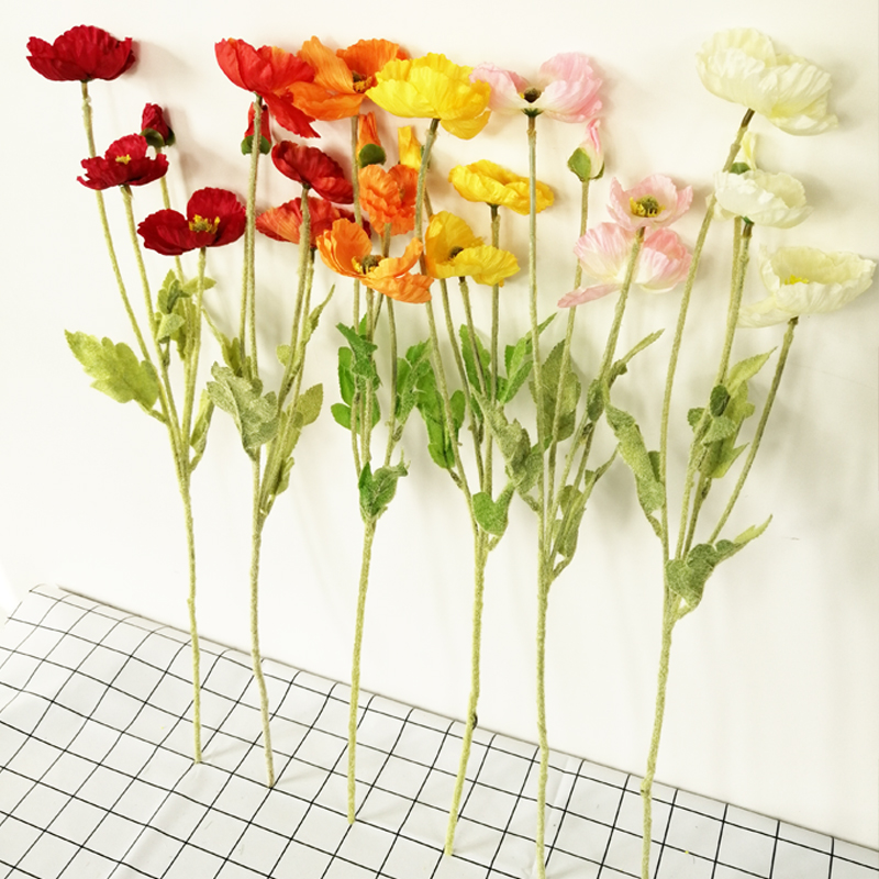 Fake flower Poppy flower Flocking flower Simulation flower Wedding road lead silk flower Wedding decoration props supplies Single branch flower material