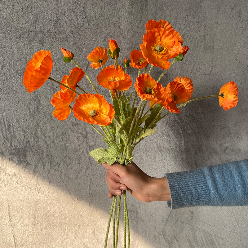 Milky white flocking Poppies Yellow flocking Poppies Big red flocking Poppies Light orange flocking Poppies Sunset Red flocking Poppies Pink flocking Poppies Blue flocking Poppies Champagne flocking Poppies