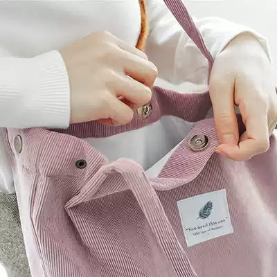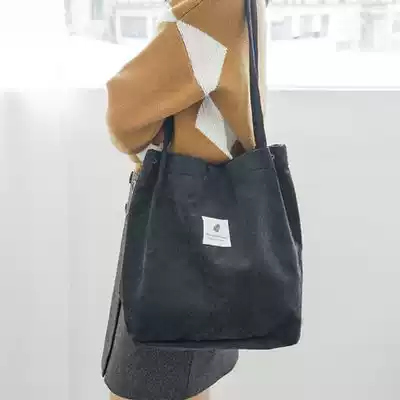 Canvas bag women's shoulder Korean ins portable literary small fresh portable carrying book bag Corduroy portable shopping bag