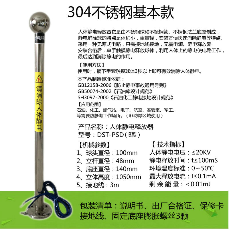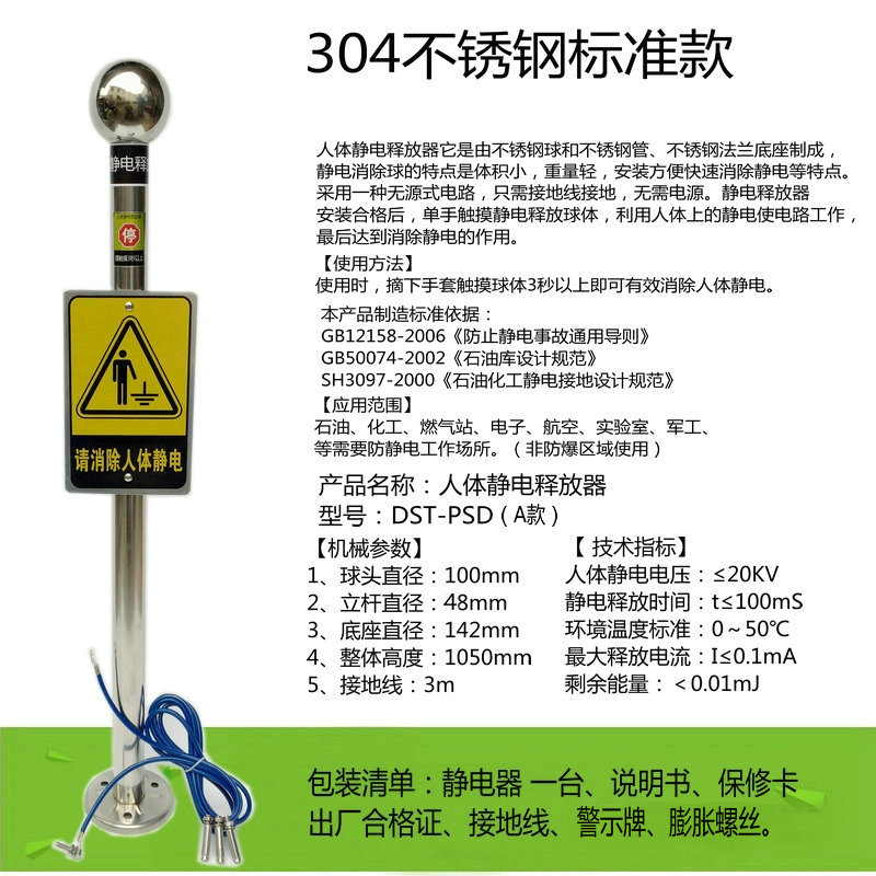 304 stainless steel electrostatic discharger A section 304 stainless steel electrostatic discharger B section large base mobile