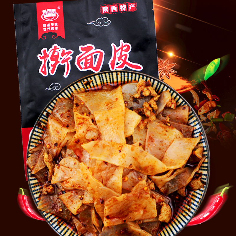 Shaanxi Cool Leather Fast Food with Rolling Noodles Sesame Sauce Rhombus Cool Pippa Spiced Spicy 4 Bags Vacuum Bagged