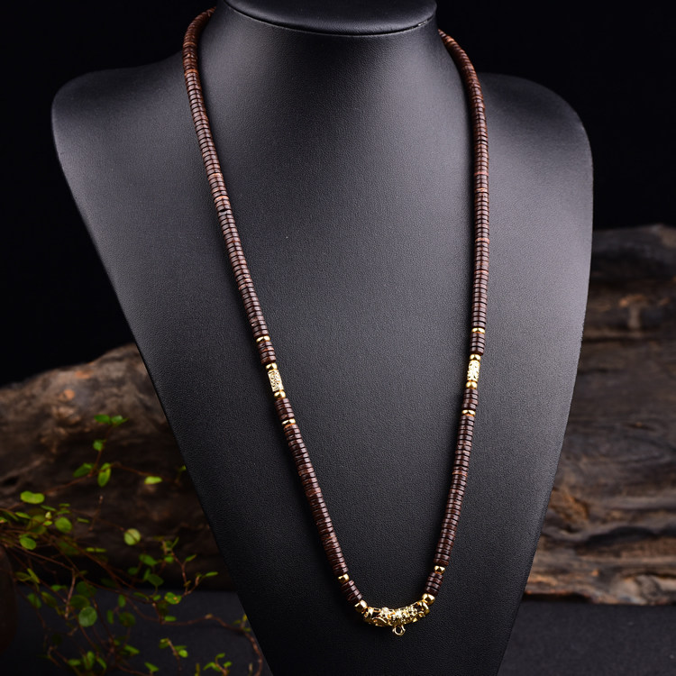 Thai Buddhist chain 6mm natural coconut shell Buddha Brand Chain Daughter's Pendant Pendant Necklace Wool necklace