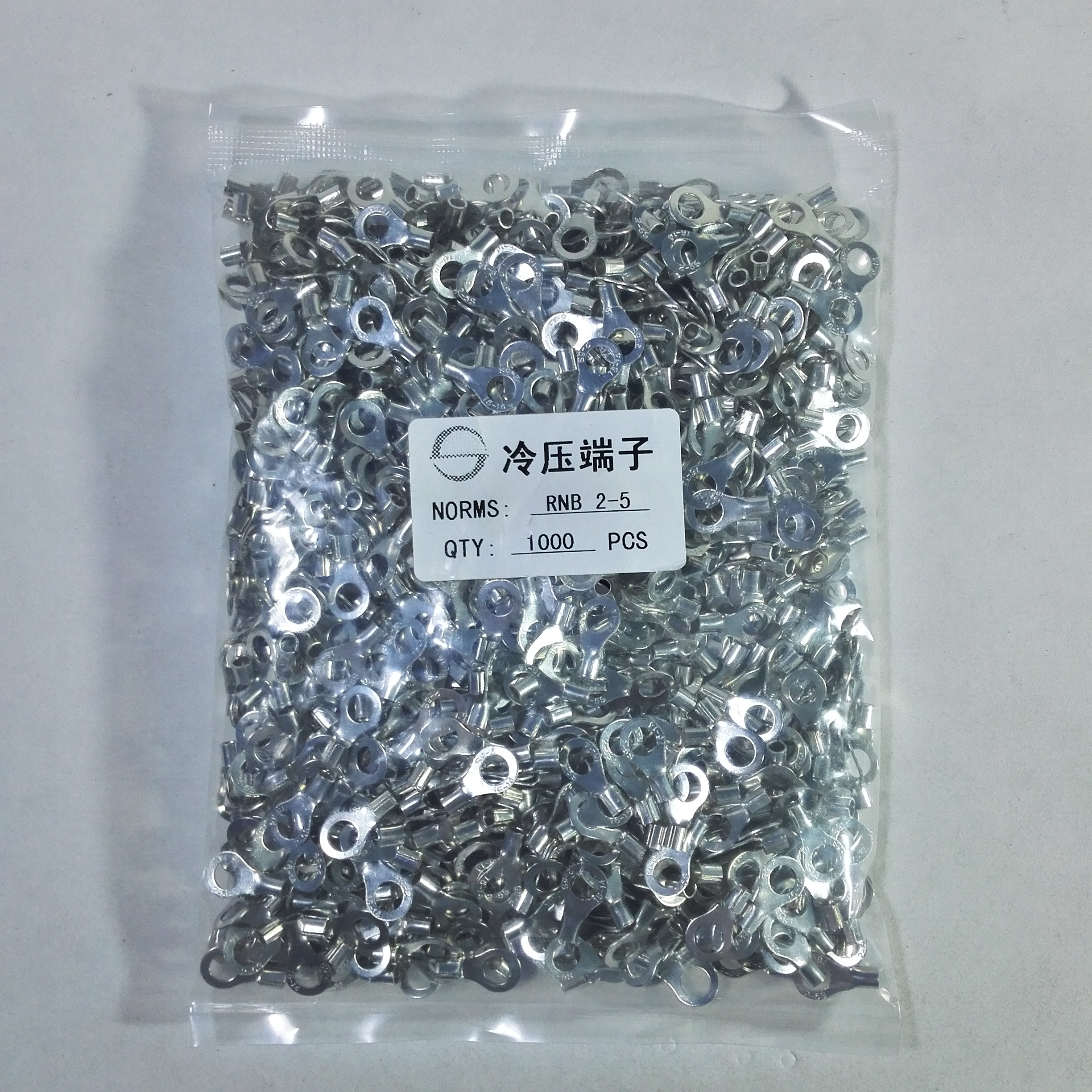 Hot-selling RNB2-5 cold-pressed terminal blocks round 0 type bare wire lug terminal 2 5 square M5 Dongguan delivery