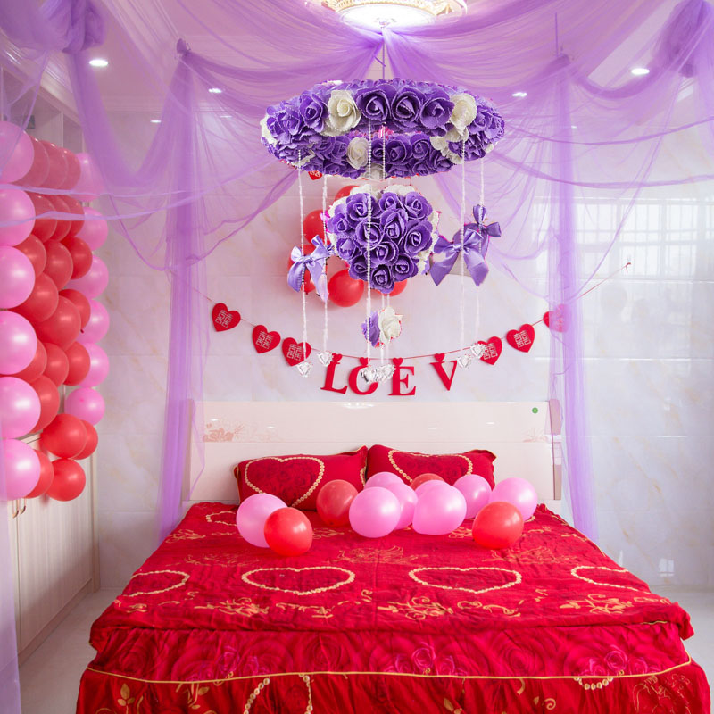 Wedding supplies wedding room bedroom layout pull flower wedding living room decoration opening shop celebration hotel romantic scene layout
