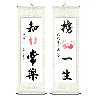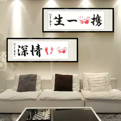Contented, happy, calligraphy and painting, little feet, baby, year-old prints, footprints, hand-foot prints, trembling, hand-painting, hand-in-hand, marriage for a lifetime