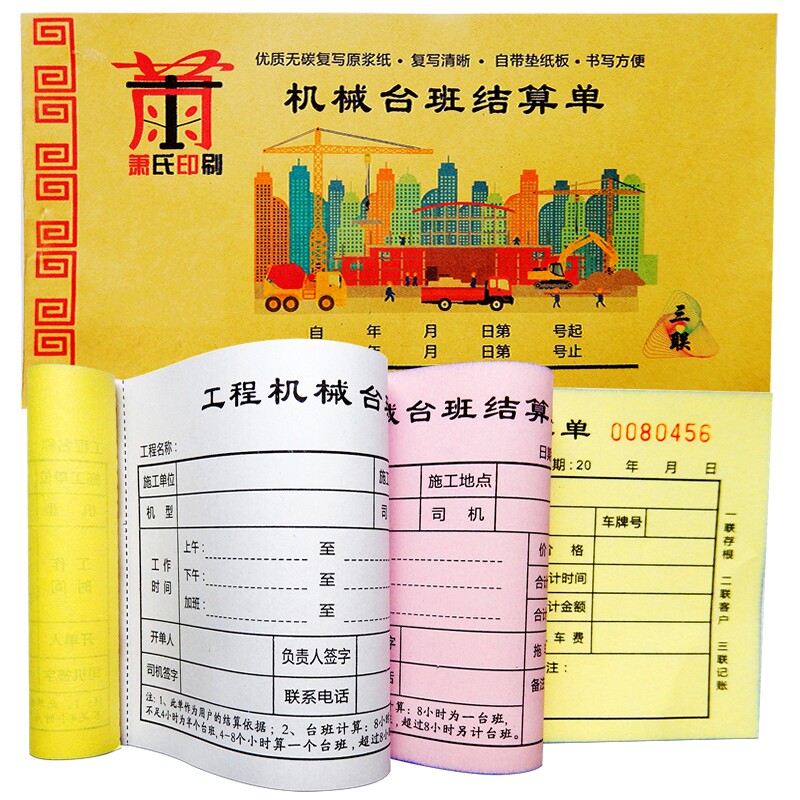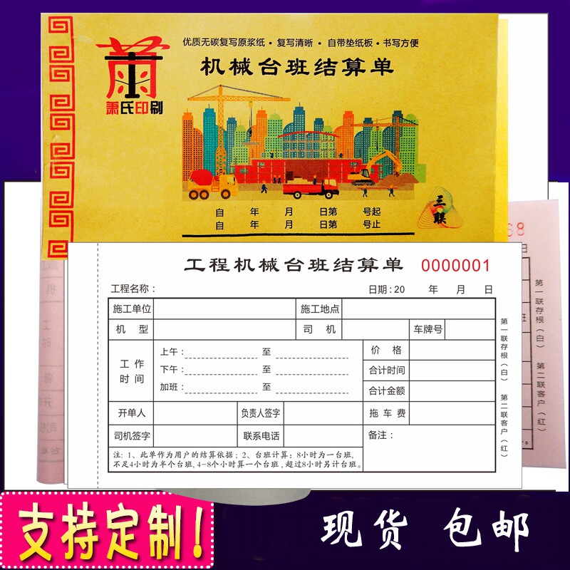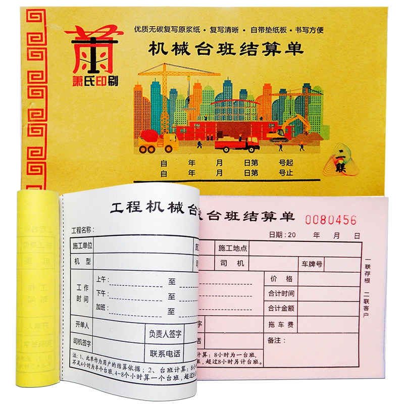Taiwan shift confirmation sheet mechanical construction station shift settlement sheet construction machinery rental sheet general construction visa sheet receipt