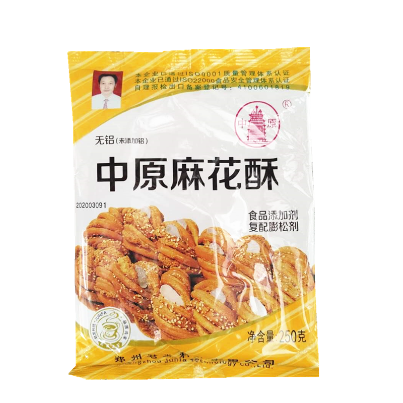 Zhongyuan Twist Crisp Junfa aluminum-free high-efficiency crisp and crisp twist biscuit peach crisp crisp 250gx20 packs