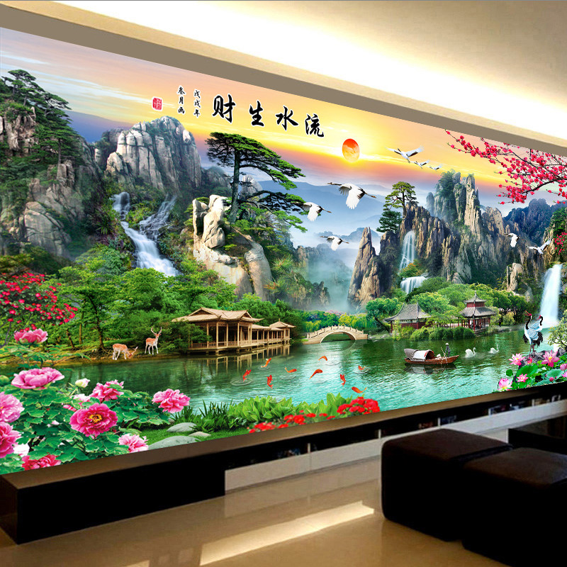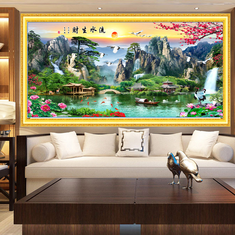 Mona Lisa Cross embroidered 2021 lines embroidered with new flowing water raw living room Dramatic Scenery Landscape Painting Cotton Thread Full Embroidered