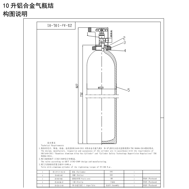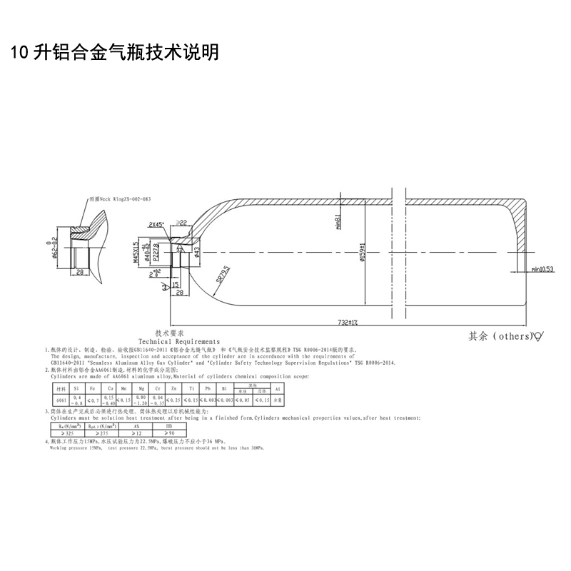 (10-liter aluminum bottle)Can hold helium, argon, nitrogen, neon, hernia, oxygen, carbon dioxide, easy to carry