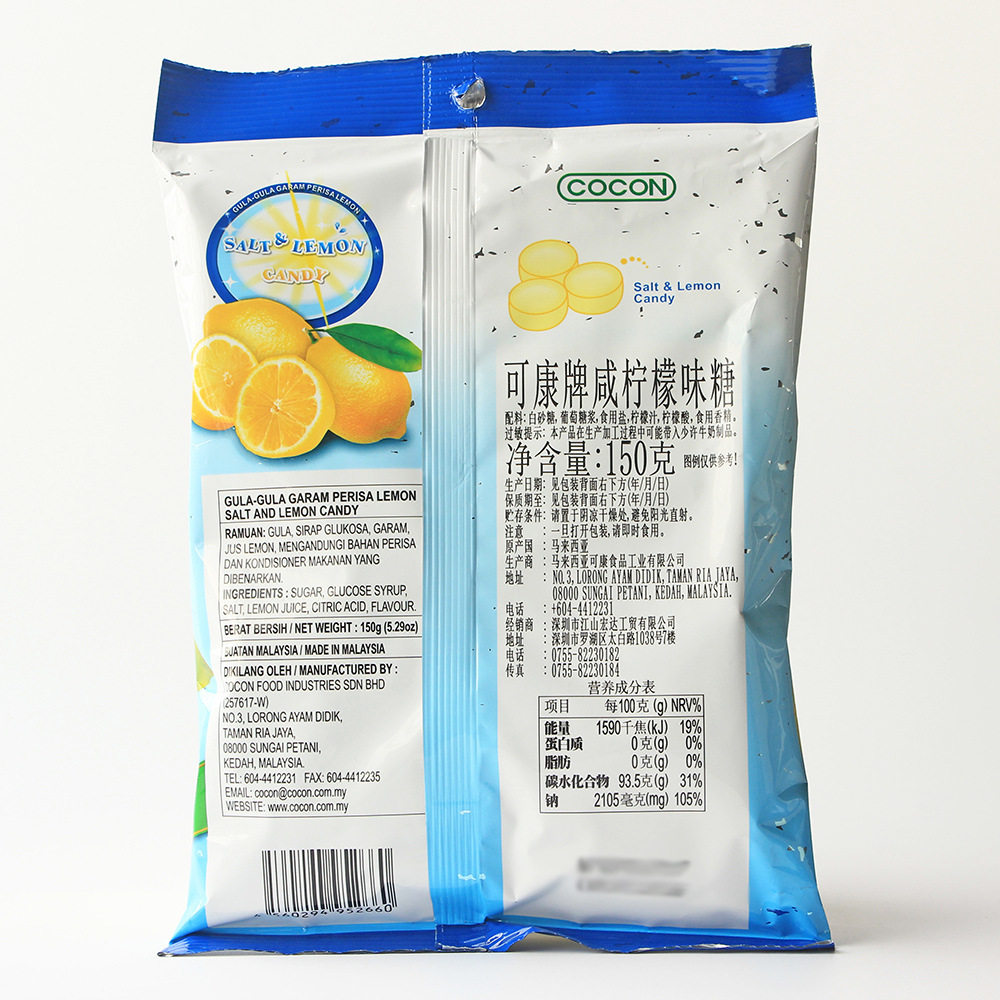 Malaysia Imports COCON Can Con Salty Lemon Candy Wedding Celebration 150g Leisure Zero Food