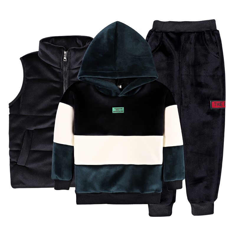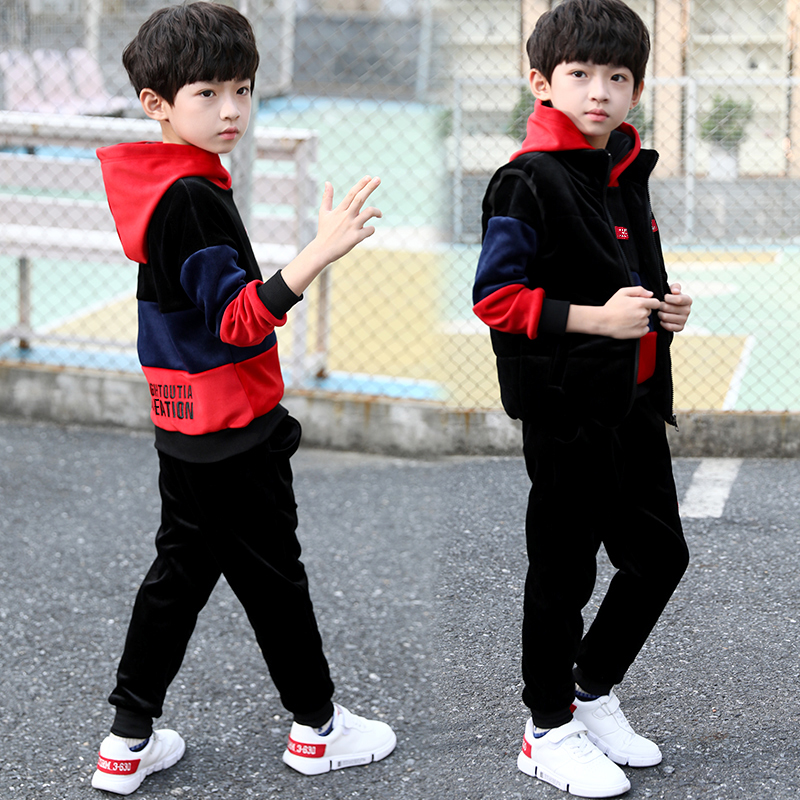 Boy Autumn Winter Gold Velvet Suit Thickened 2022 New Children Suit CUHK Suede Three Sets 10 Year 12 Tide