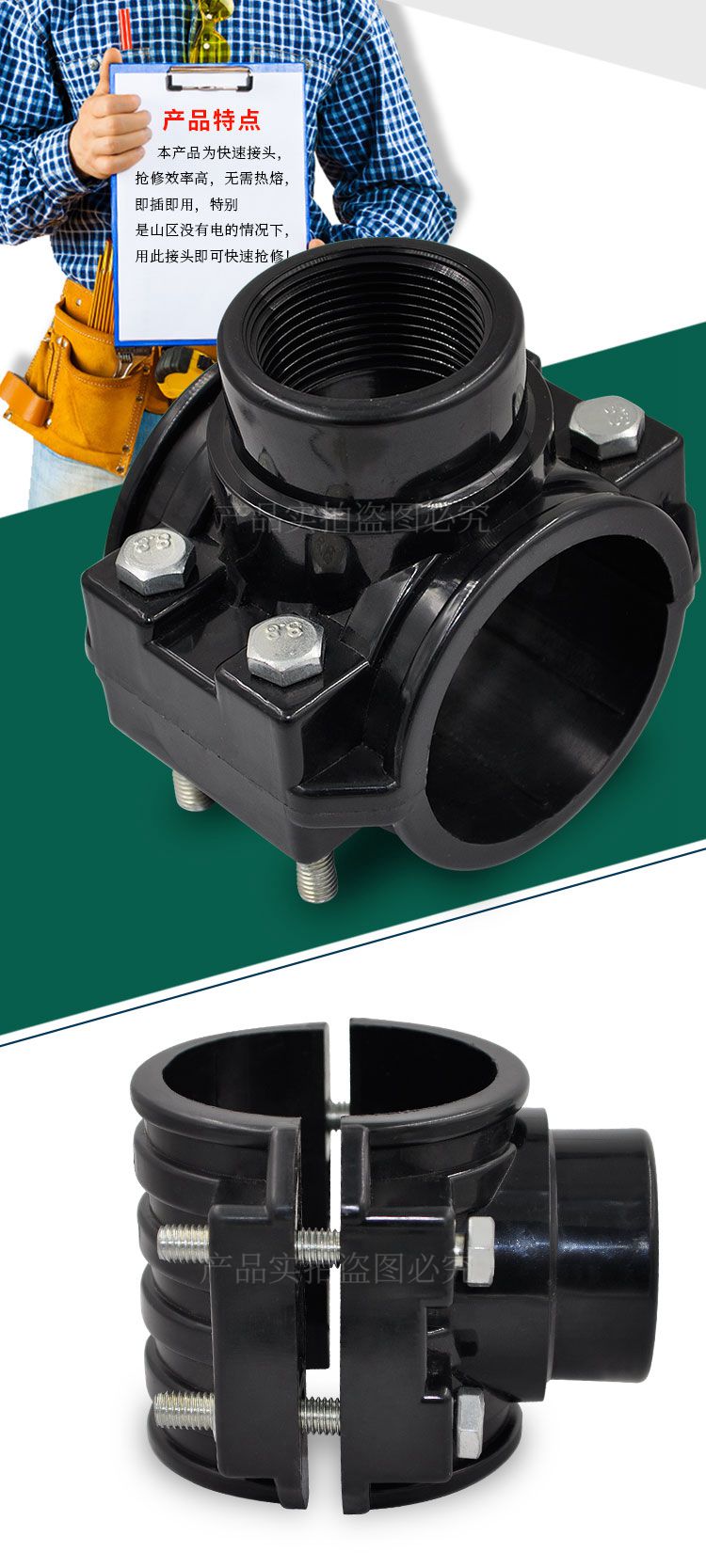PE water pipe internal wire increase interface quick repair and contact changing diameter saddle internal wire Haff section leakage joint pipe fittings pipe fittings