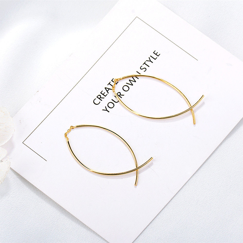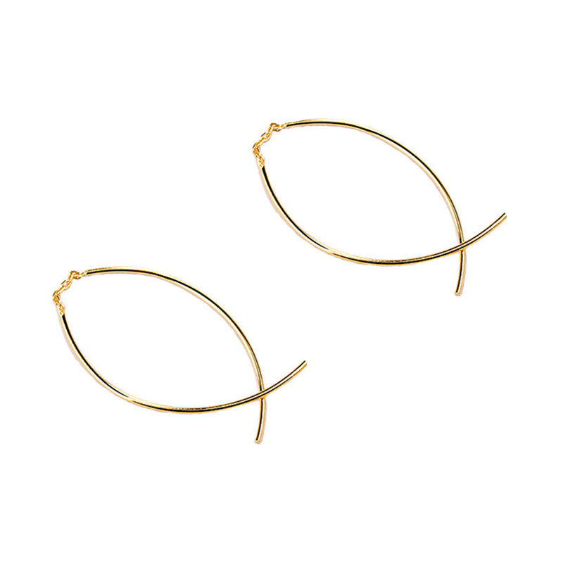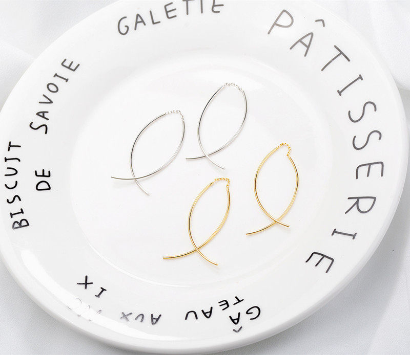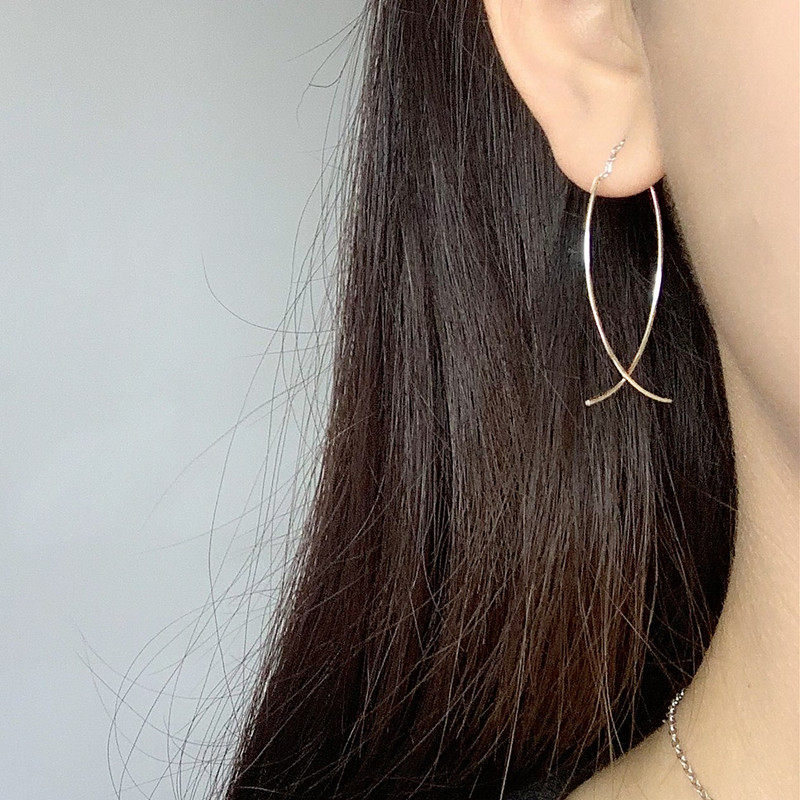 Korean 925 sterling silver plated 14K curved creative cross fish tail ear bending Super fairy ear hanging temperament personality does not fade