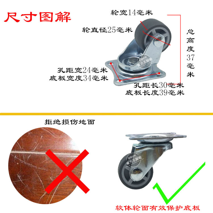 1 Inch Mute Universal Wheels Supermarket Shopping Basket Small Pulley Flowers Shelf Wheels Home Innate Wheels