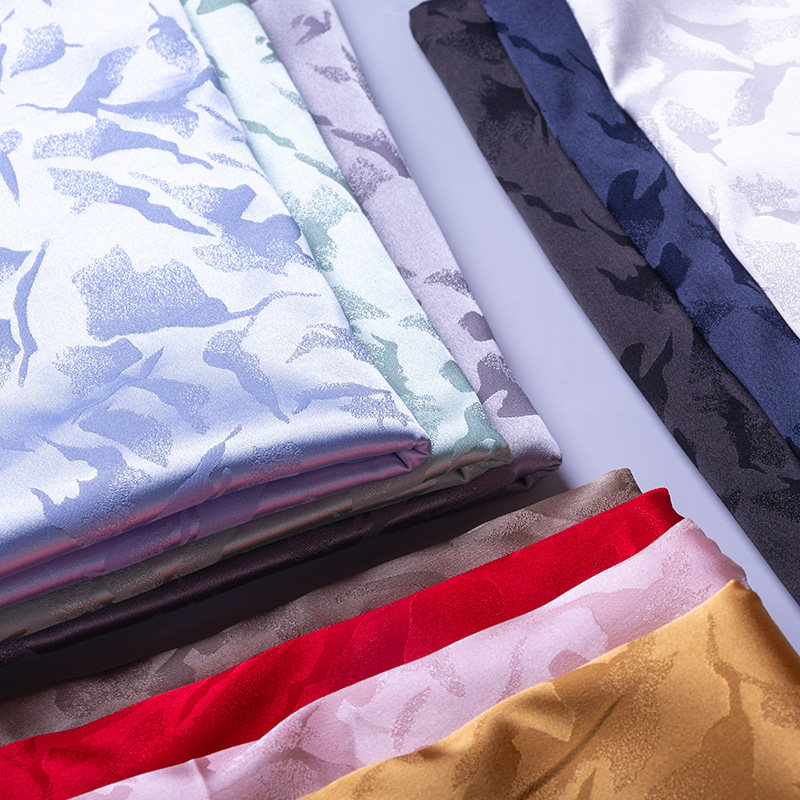 Spring and summer Qianshan bird simulation silk jacquard satin elastic Hanfu costume fabric handmade skirt horse skirt fabric