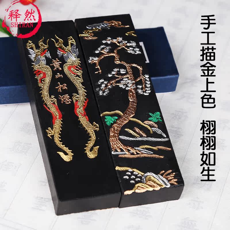 Hui ink natural Huangshan pine smoke ink stick ink block fragrance Hu Kaiwen study ink calligraphy old ink ingots pure handmade inkstone