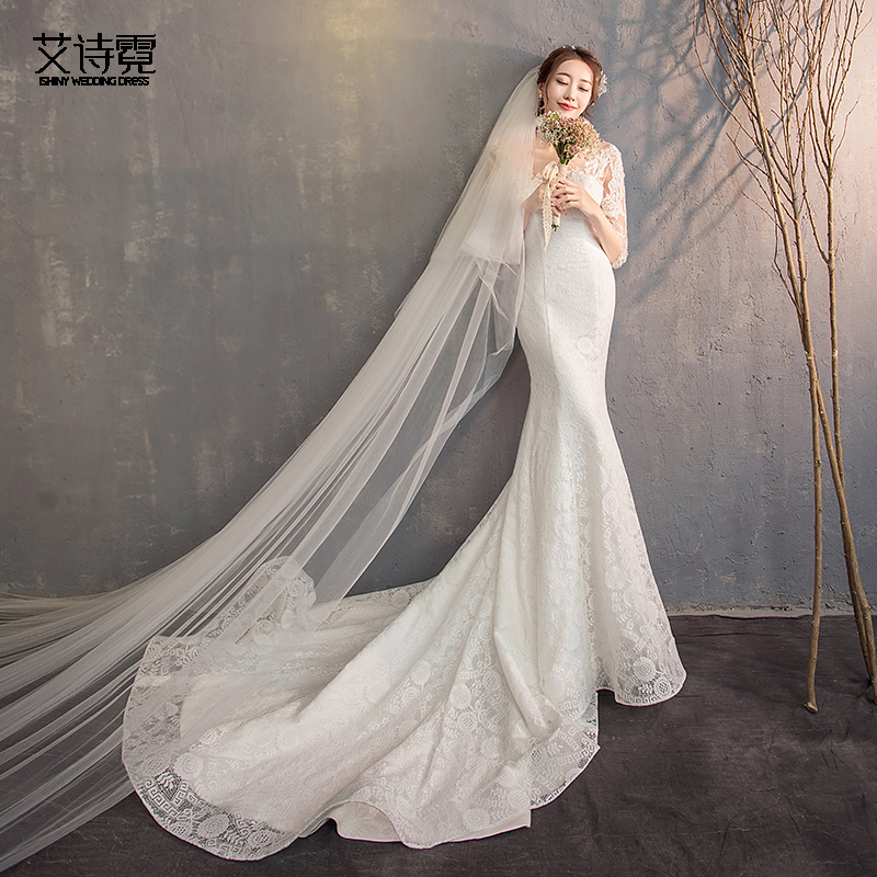 White wedding veil headdress super Xian Sen female bride net red retro puff yarn trailing princess multi-layer medium long