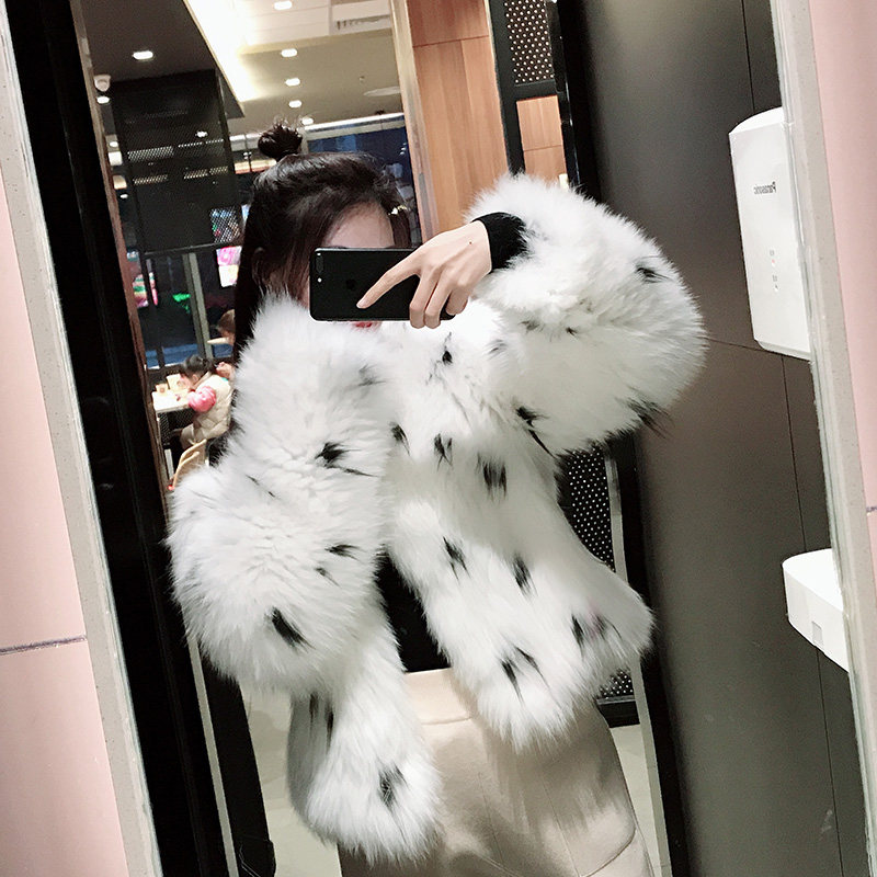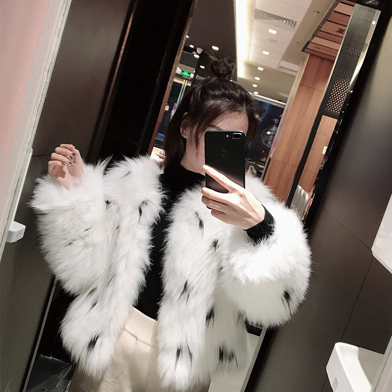 Net red Fox Fur Weave Leather Grass Jacket Short woman long sleeve Korean version white fur coat with thin white fur