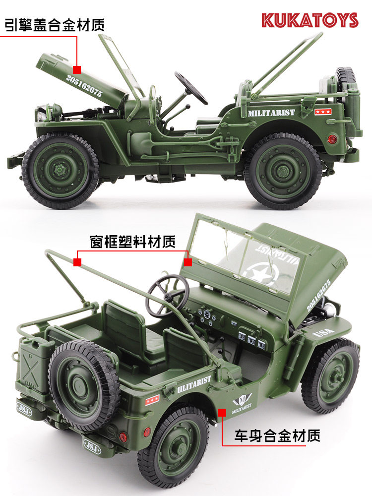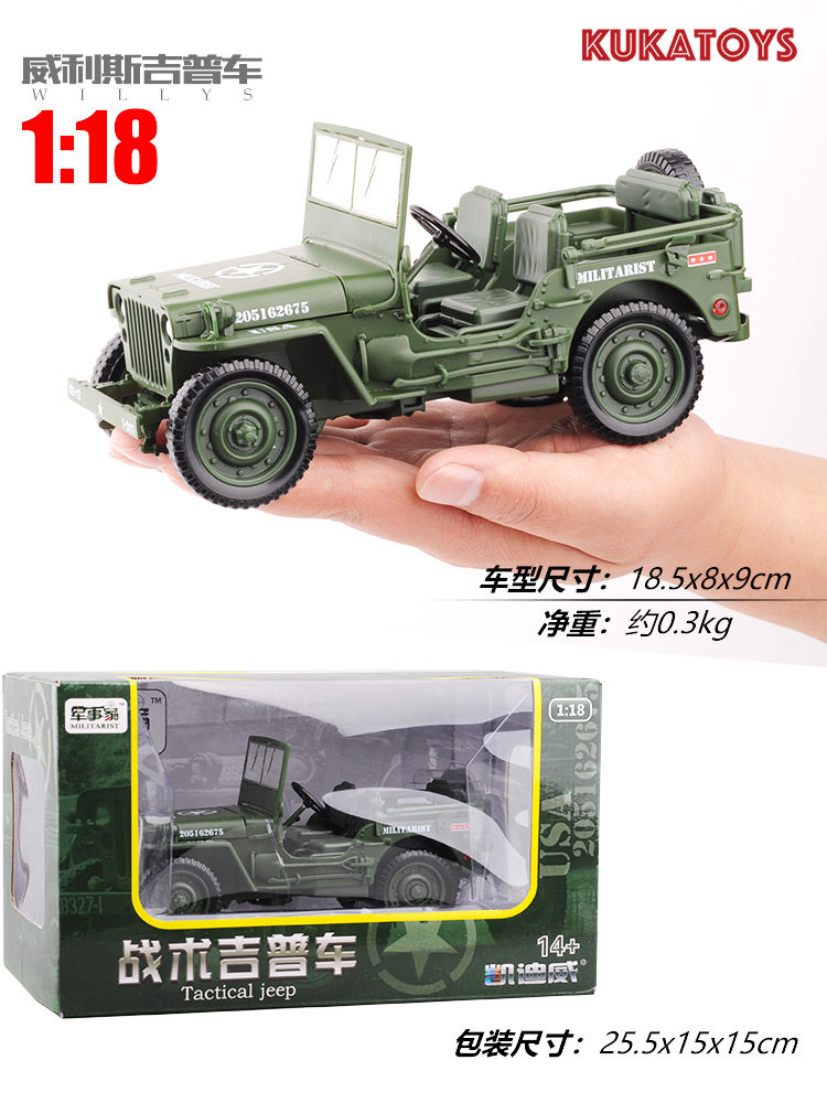 Alloy Military Vehicle Model 1:18 Military Tactical Jeep Dry Horse H1 WWII Willis Military Vehicle Gift Kaidiway