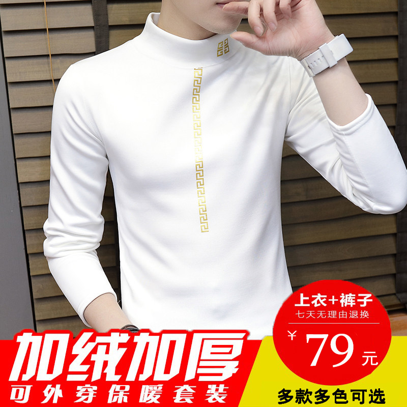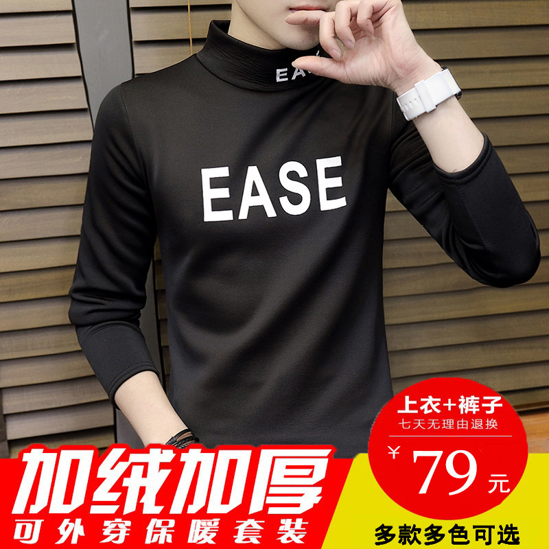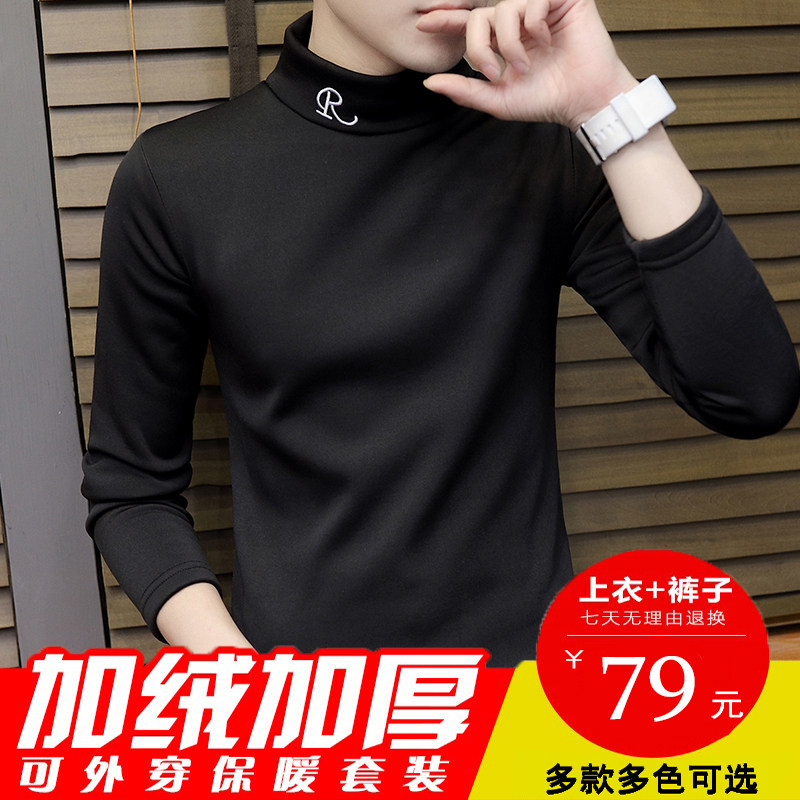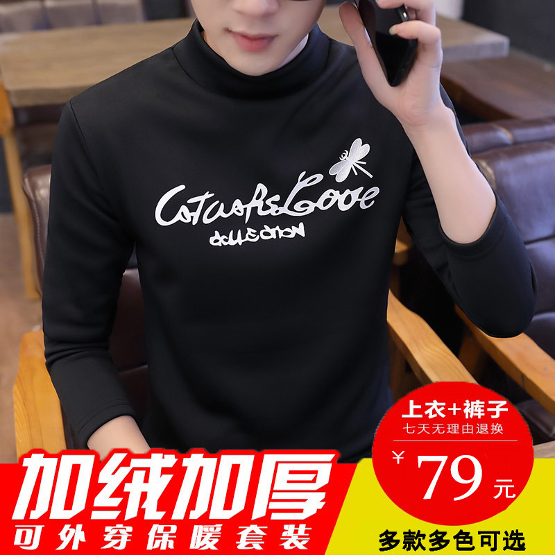 Half turtleneck hot pants men's plus velvet thickening teen junior high school students bottoming sanitary pants autumn clothes set