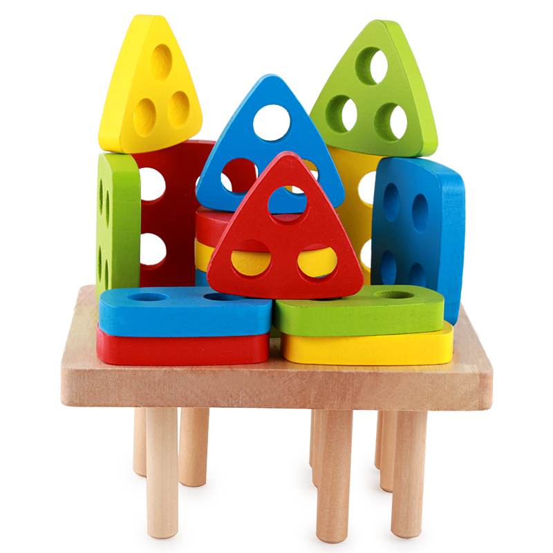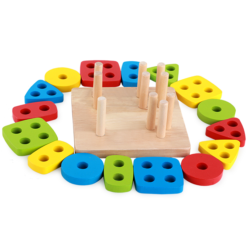 Wooden Four Column Shape Pairing Set Pillar Children's Brain Toy 2-3-4 Years Baby Early Education Cognitive Geometry