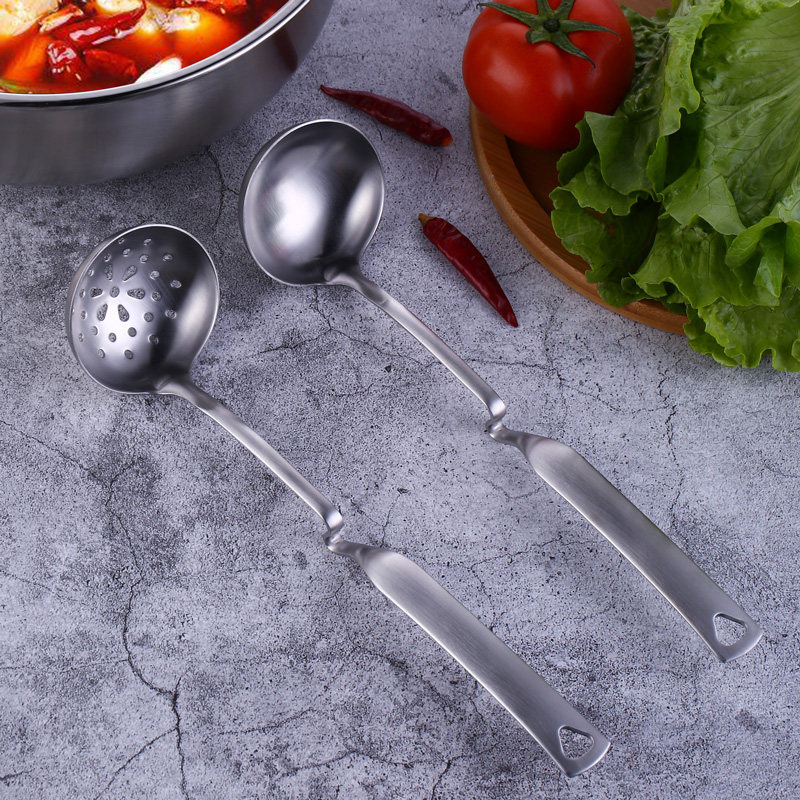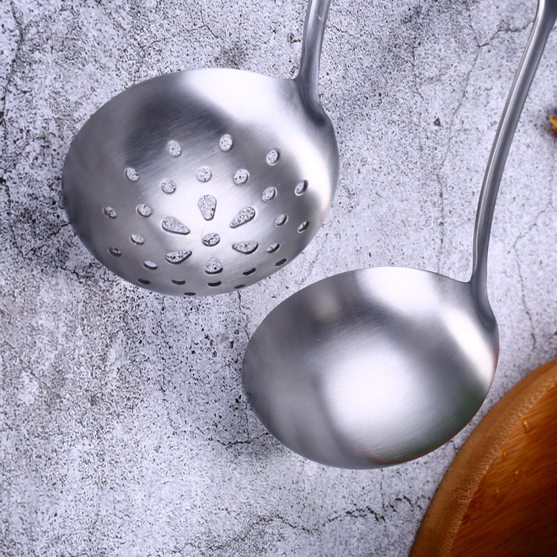 Hot pot spoon soup spoon leaky spoon integrated home 304 stainless steel long handle large soup spoon kitchen with porridge spoon congee