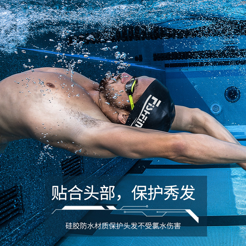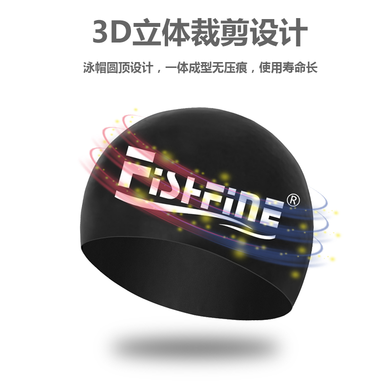 FISHFINE stereo 3D silicone swimming cap Female long hair Waterproof large elastic ear protection swimming cap Male swimming cap