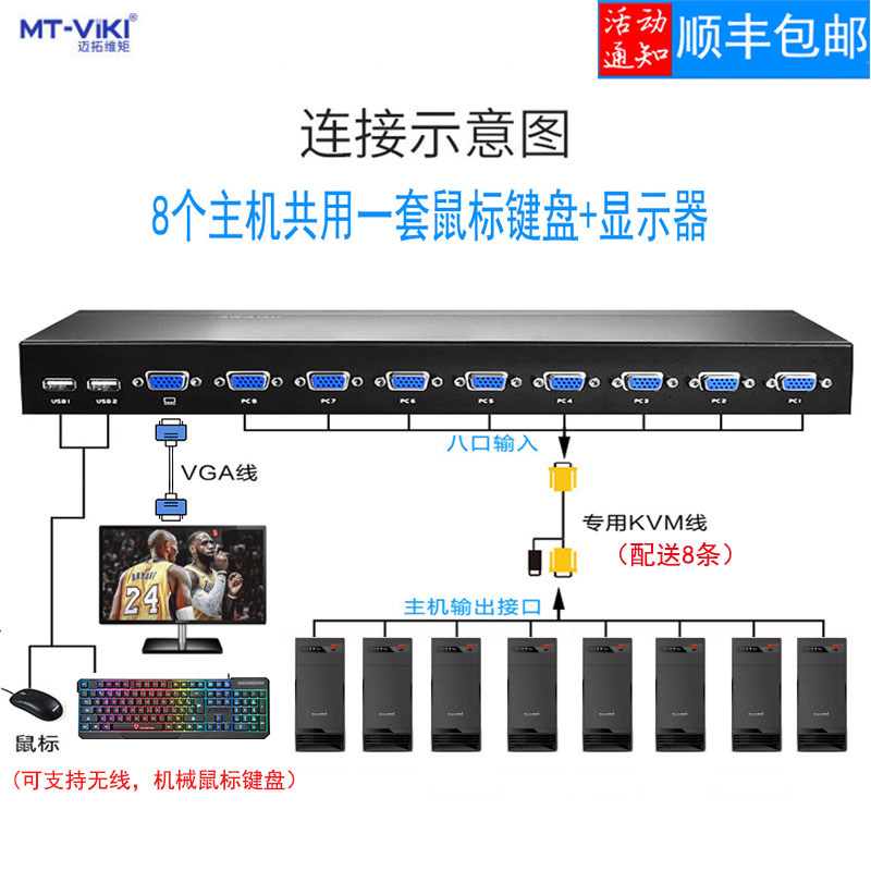 Maxtor dimension moment MT-801UK-L kvm switch 8-port rack-mounted USB multi-computer mouse keyboard display HD vga switch 8-in-1-out video recorder monitoring screen cutting