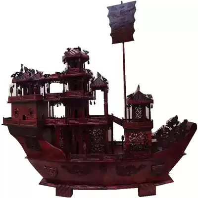 Laos Big Red Sour Dragon boat Mahogany Ship wood carving golden silk Nan Wooden boat model Chinese ancient sailing gift