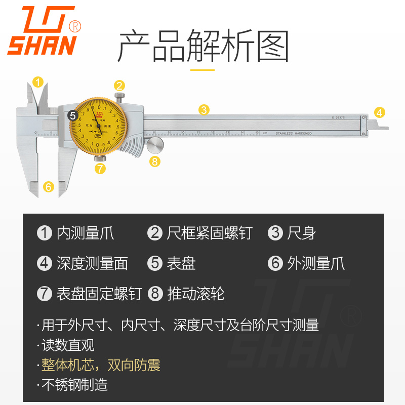 Guilin Guiliang belt watch caliper high-precision stainless steel vernier represents caliper 0-150-200mm oil standard caliper