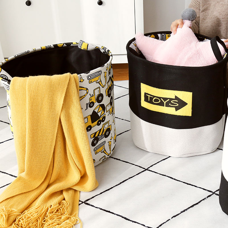 Yellow construction car storage bucket 40*33cm black and white toy storage bucket 40*33cm truck toy storage bucket 40*33cm