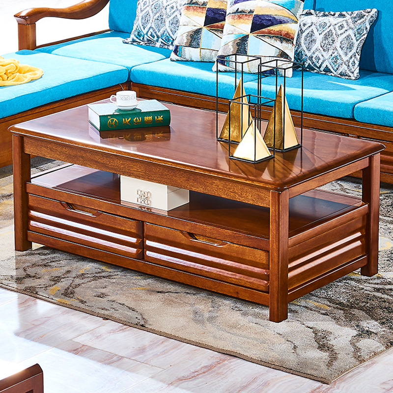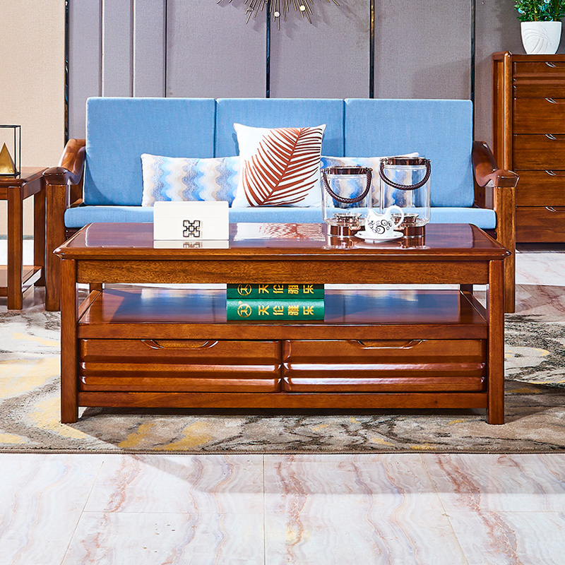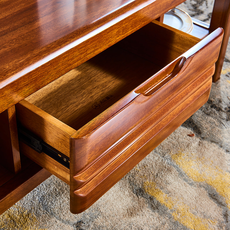Full solid wood long tea table with drawer walnut wood living room home innate small family wood tea Taichung style tea table TV cabinet