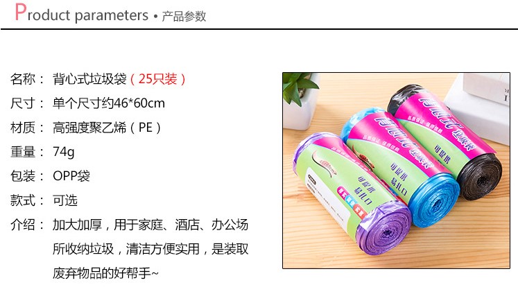 The Dining Room Hotel Home Vest Style Large Number garbage bag thickened Roll Disposable Household Plastic Bag 25 only clothes