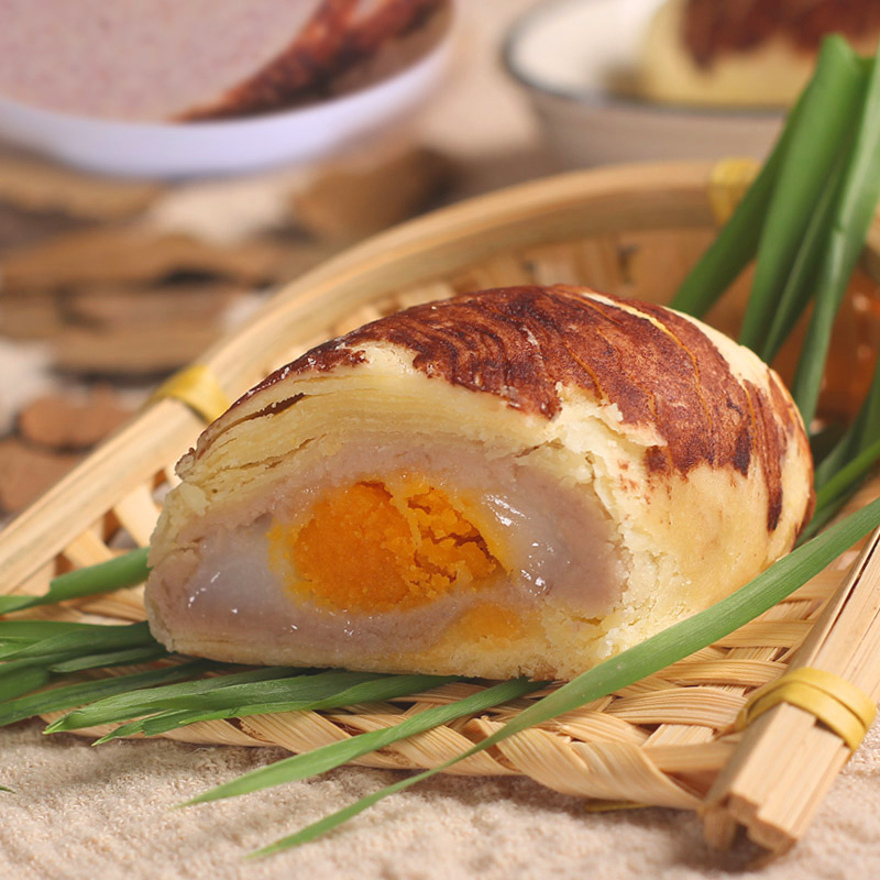 Taro stuffing (Taro white phoenix bean white sugar Wheat malt Soybean vegetable oil trehalose flavor(2-(4-methoxyphenoxy)propionate sodium)Wheat flour Cocoa powder ' mochi anhydrous cream milky yellow