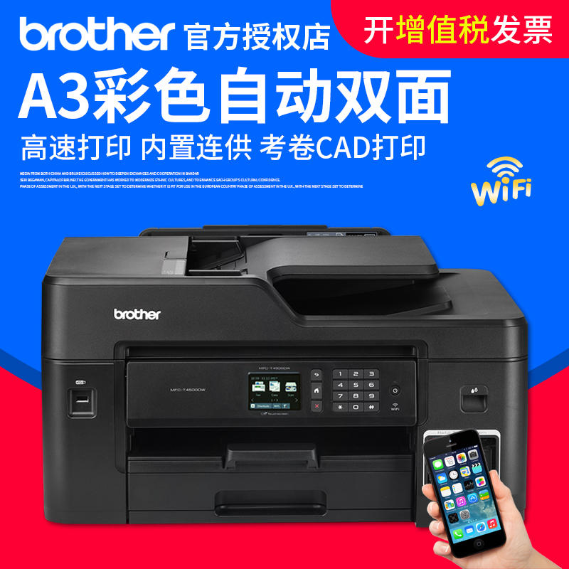 Brother MFC-T4500DW A3 Original Plant Continuous Ink System Print Machine Photocopy All Sweep Fax Fax Machine Color Inkjet Multifunction Photo Wireless Office Home Business Ink Cabin Type UL