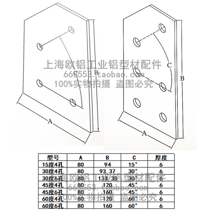 4040 external aluminum plate 15 degrees 40 degrees 45 degrees 60 degrees 4 holes 6 holes multi-angle connection plate aluminum connection block