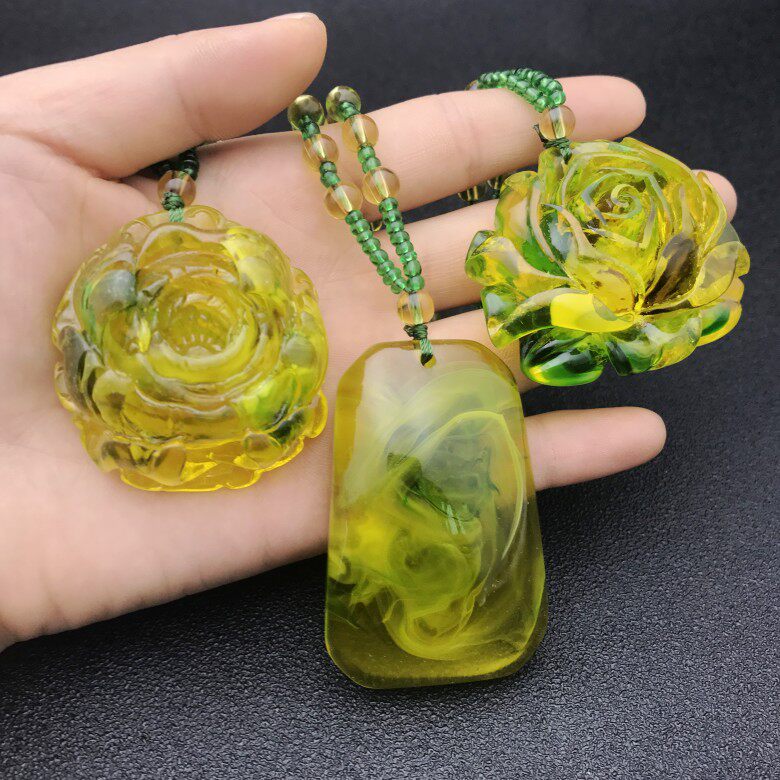 Green Silk Imitation Amber Necklace-Green Silk Imitation Amber Necklace-Square Green Silk Imitation Amber Necklace-Gourd Green Silk Imitation Amber Necklace-Large Lotus Green Silk Imitation Amber Necklace-Lotus Green Silk Imitation Amber Necklace -