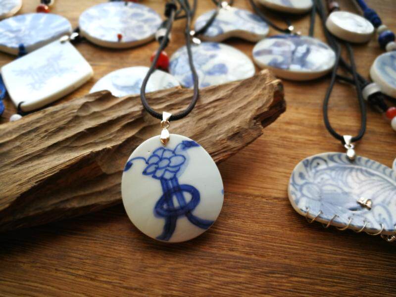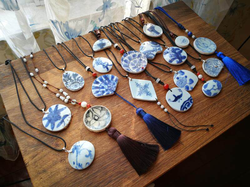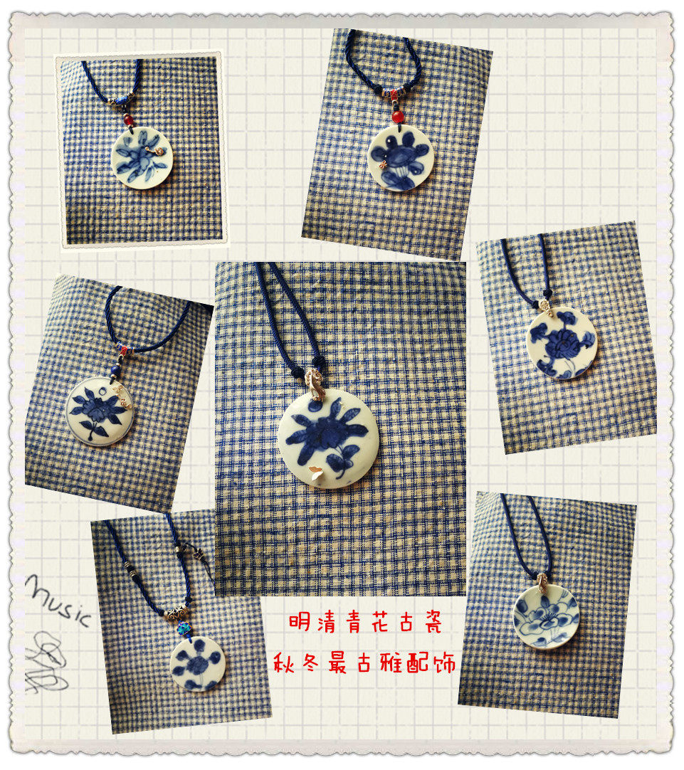 Minqing Qingqing Flower Ancient China Porcelain Old Porcelain Necklace Pendant Sweater Necklace With Classical Hanfu Qipao Bird and Flowers Fragrant and Fragrant Flowers