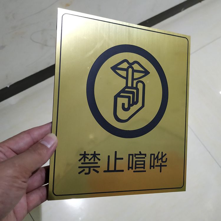 No noise, keep quiet, double-color board carving reminder, brushed gold warm sign sign sign sign