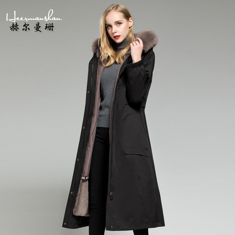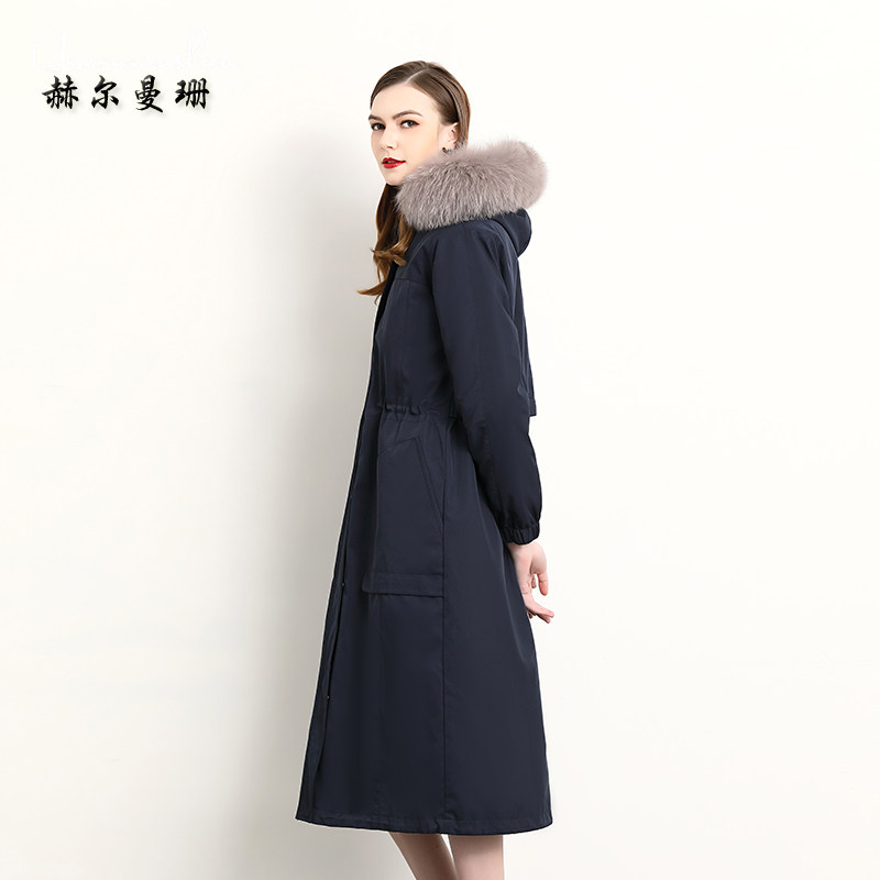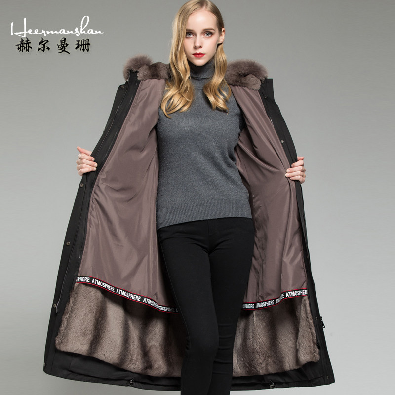 Hermanshan 2021 winter new pieker women's long version fur Rex rabbit liner detachable nick coat