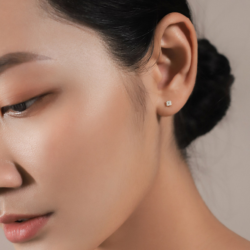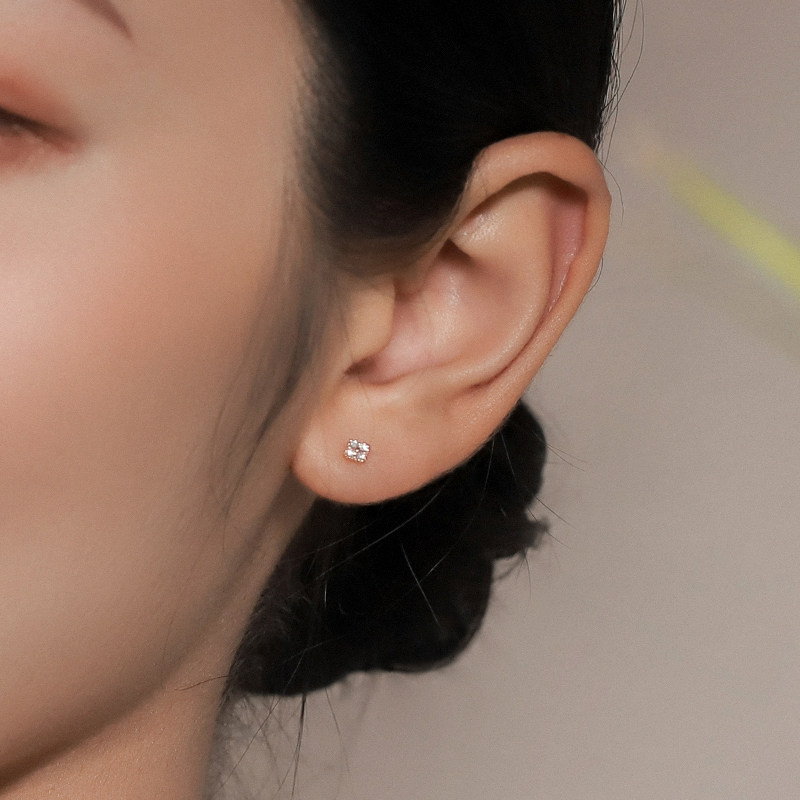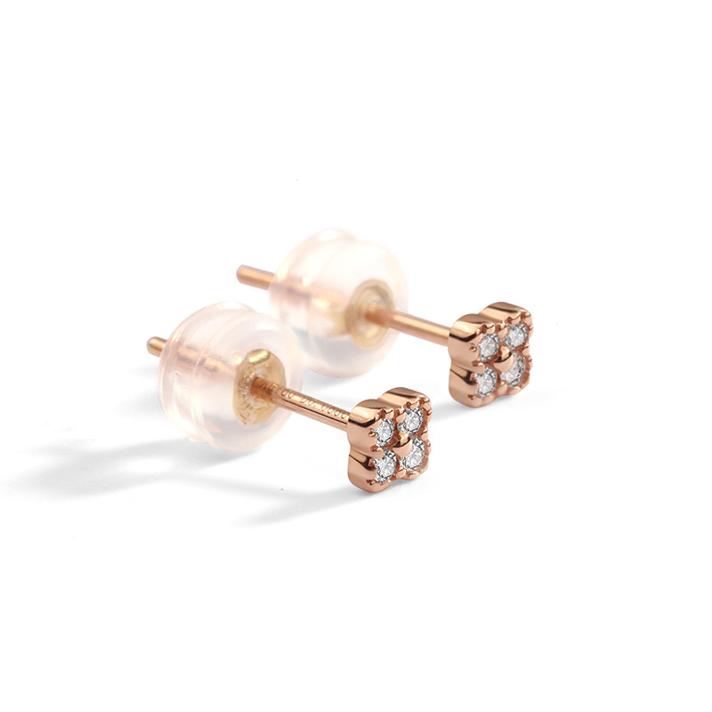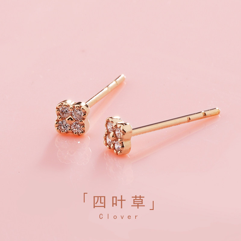 Mini Diamond Four Bluff · 18k Golden Needle Simple Female Little Delicate Rose Golden Earring Small Earring Nail