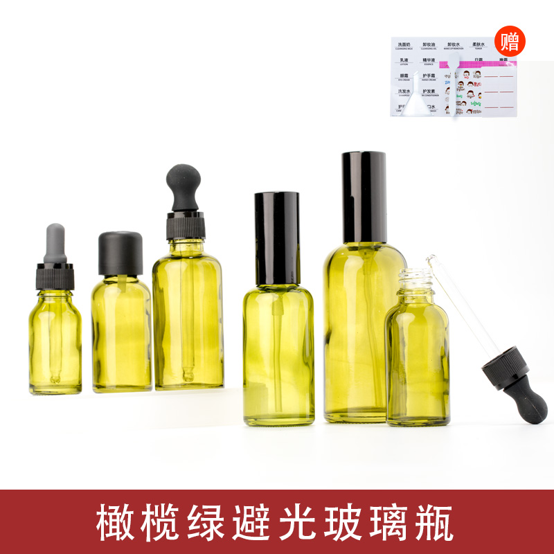 Green Glass Bottle Pure Dew Fine Mist Spray Bottle Lotion Press Bottle Dropper Bottle Essential Oil Spin Lid Bottle Avoid Light Mist
