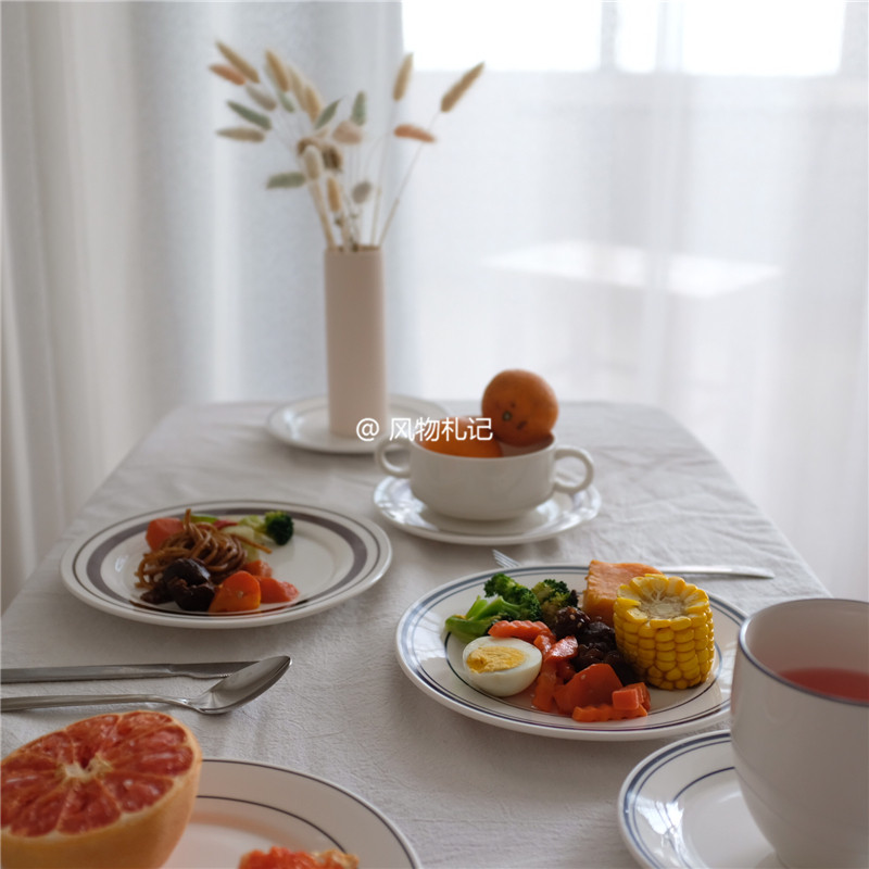Clearance Specials Korean Style Simple Line Ceramic Plates Plates Breakfast Discs Dessert Plates Korean Dining Room
