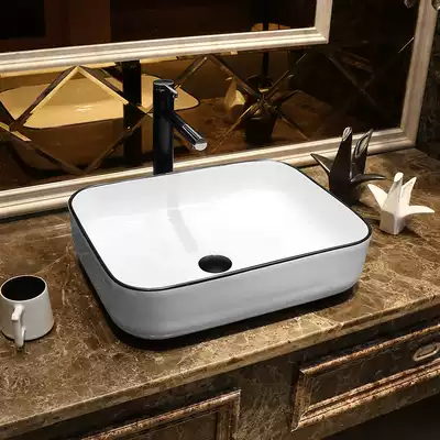 Jingyan white black edge Nordic art stage basin rectangular ceramic washbasin modern simple table wash basin