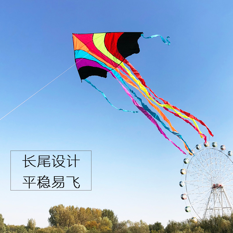 Rainbow Kite Weifang Triangle Seven Colorful Flying Sky Rainbow Children Kite Breeze easy to fly long tail beginners