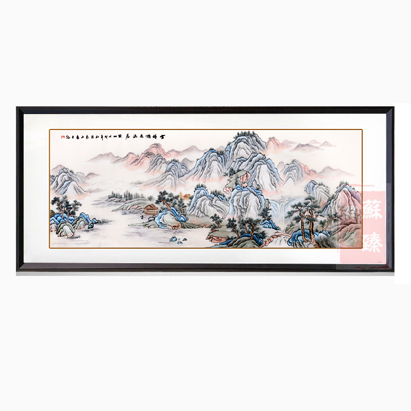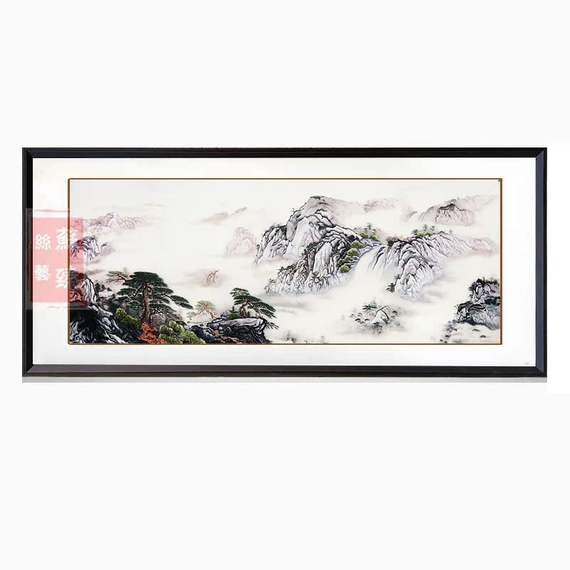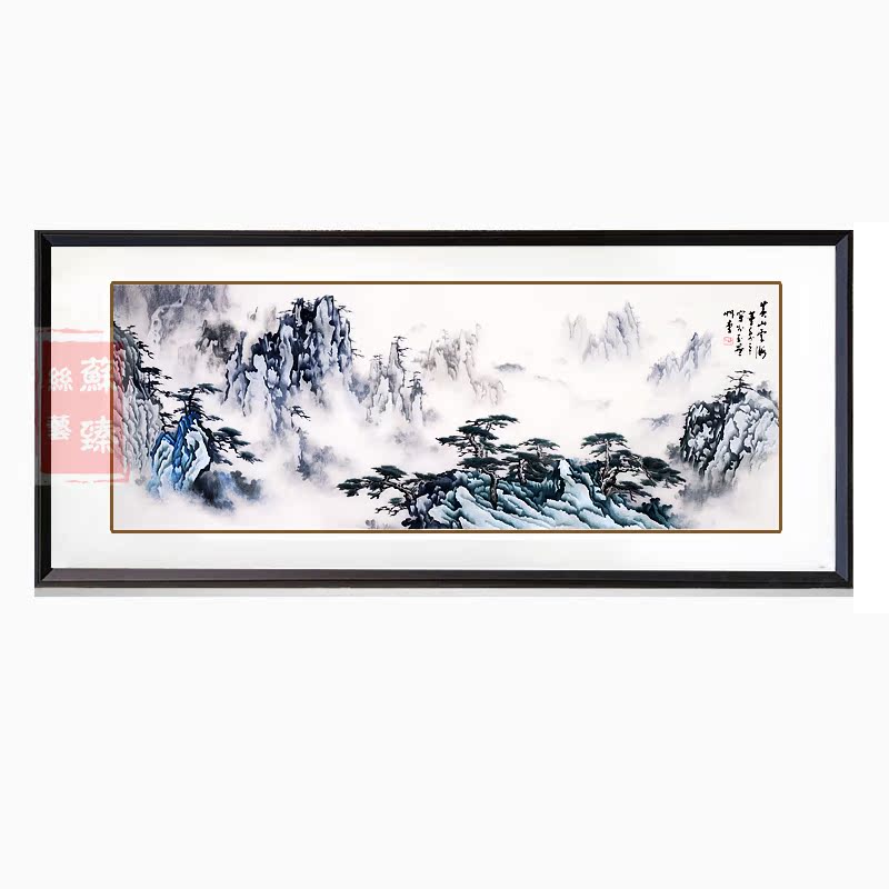 High-grade Su embroidery finished products hanging paintings Silk fine landscape paintings Huangshan clouds and mist hand embroidery High-end living room welcome pine