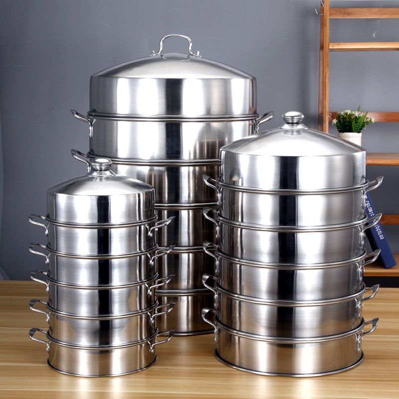Stainless Steel Commercial Large Steam Cage Steamed Buns Steaming Pan Special Large Capacity Multilayer Steam Cage Water Dumplings Domestic Buns