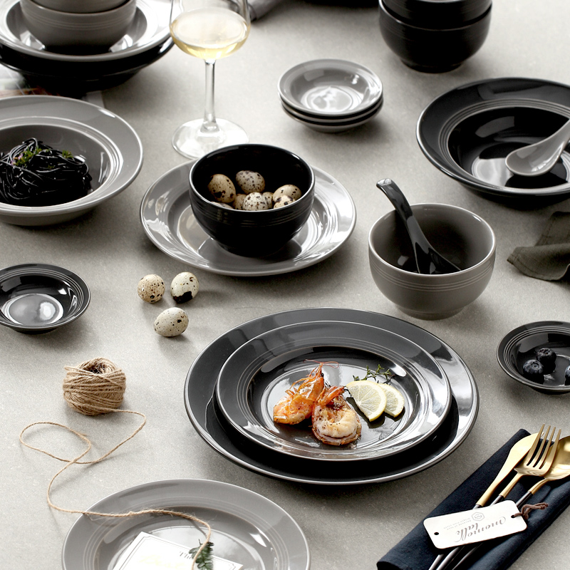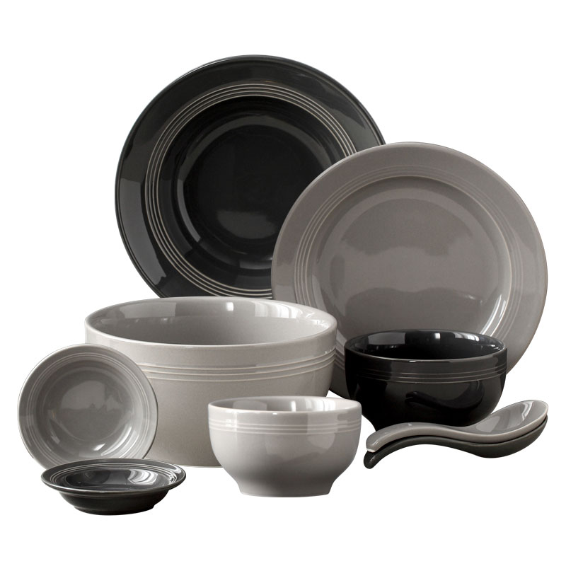 Spoon-Gray spoon-Black-Black-Gray-Black 4 5 inches Rice Bowl-Gray 4 5 inches Rice Bowl-Black Soup Bowl-Black Soup Bowl-Black 8 inch Soup Dish-Gray 8 inch Soup-