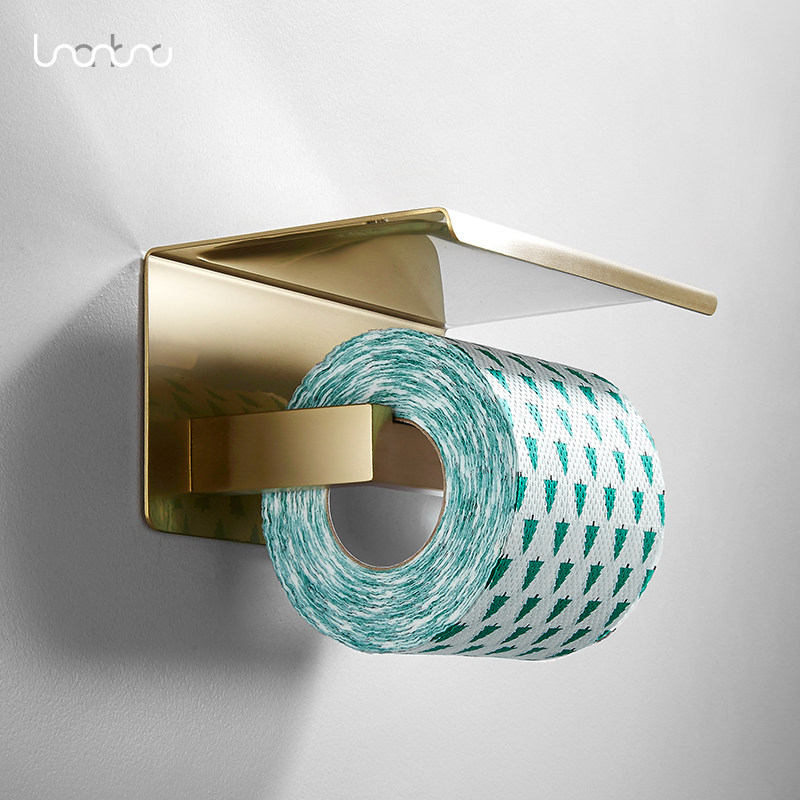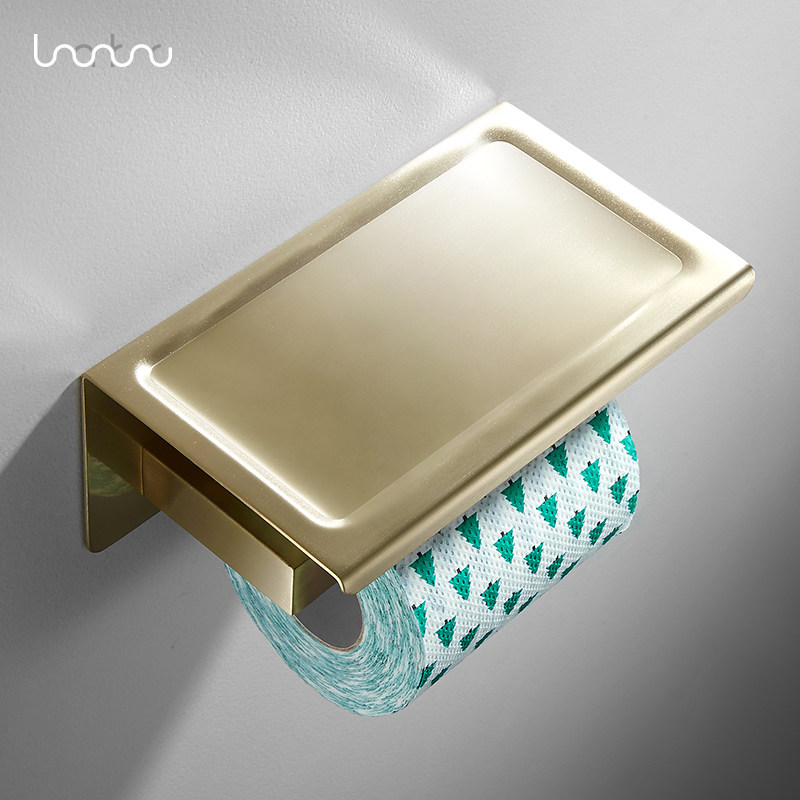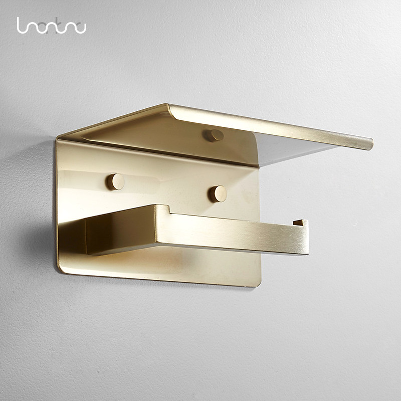 Nordic Wire Drawing Gold Brass Paper Towel Rack Makeup Room 304 Stainless Steel Drum Toilet Paper Toilet Paper Holder Bathroom Rack Bathroom