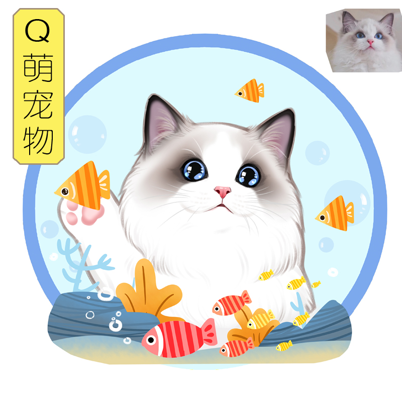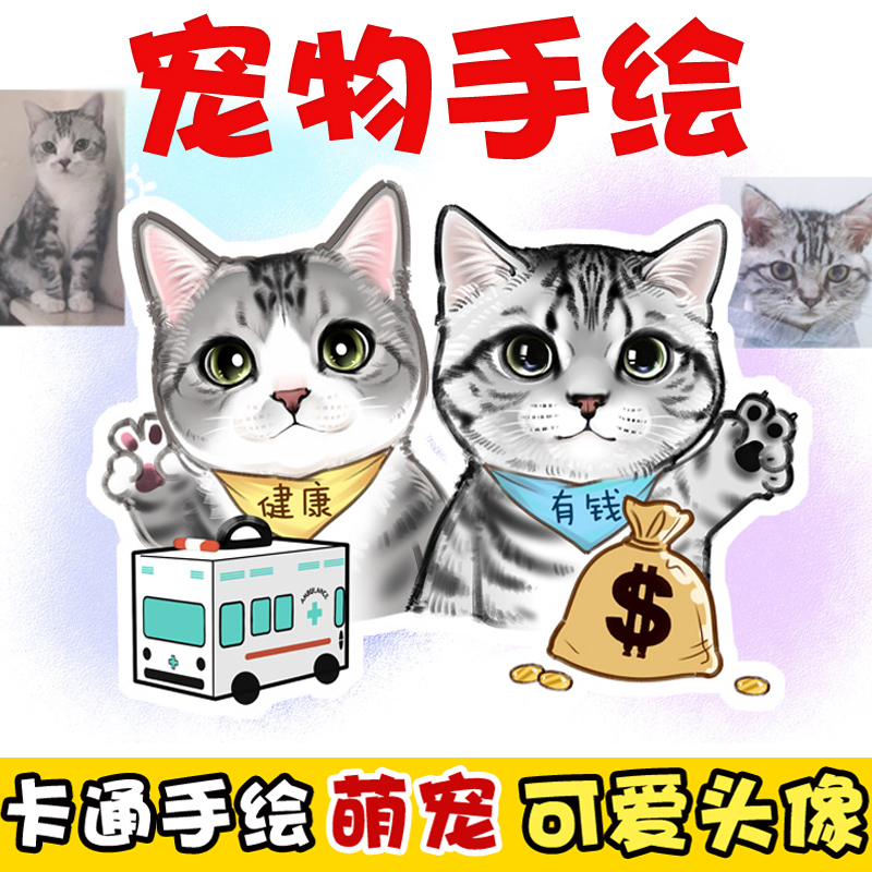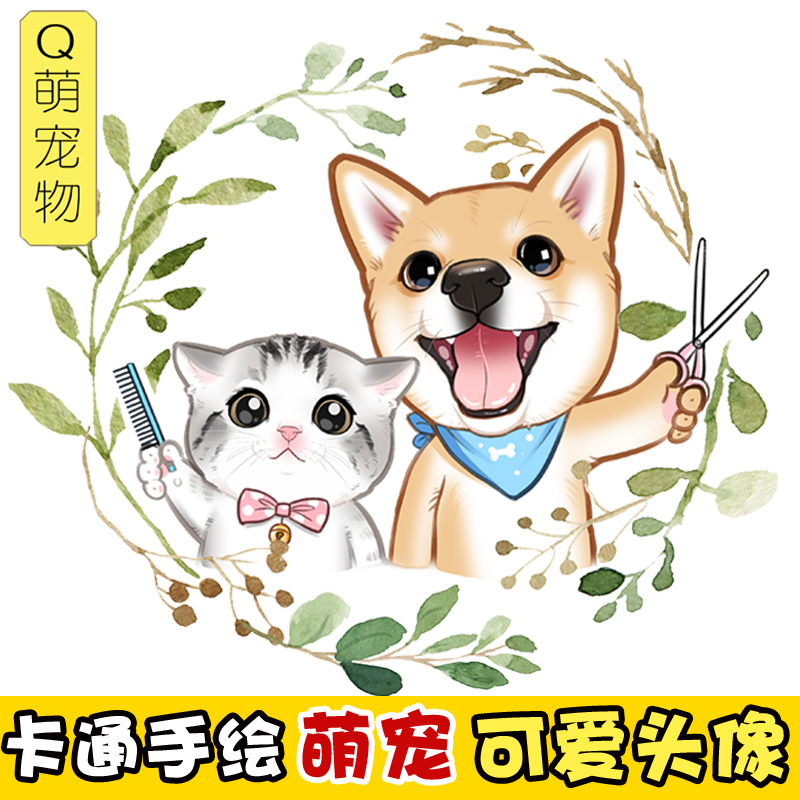 q Meng Pet Cartoon Cat Cartoon Cat Cartoon Cat Cartoon pooch Miniature Letter head custom design animal portrait hand-painted